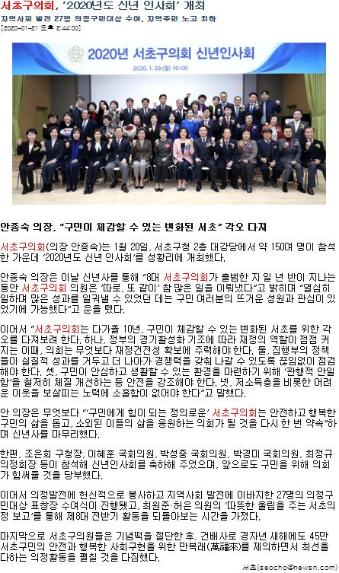 | 언론보도(서초구의회, ‘2020년도 신년 인사회’ 개최) 2020.01.21 서초신문 | |||||