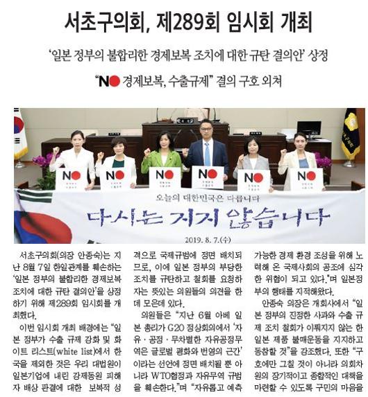 | 언론보도(서초구의회 제289회 임시회 개최) 2019.09.03 서초신문 | |||||