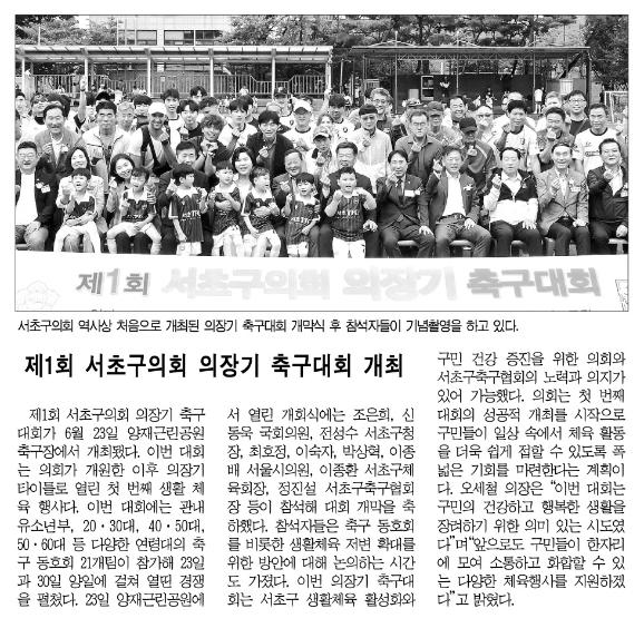 | 언론보도(서초구의회 의장기 축구대회 개최) 2024.07.17 서초구민신문 | |||||