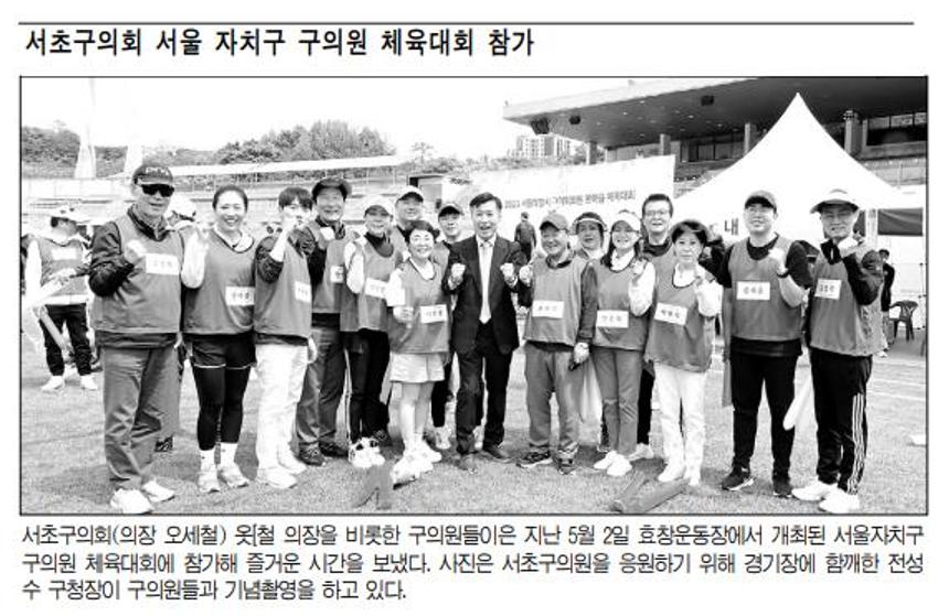 | 언론보도(서초구의회 서울 자치구 구의원 체육대회 참가) 2023.05.24 서초구민신문 | |||||