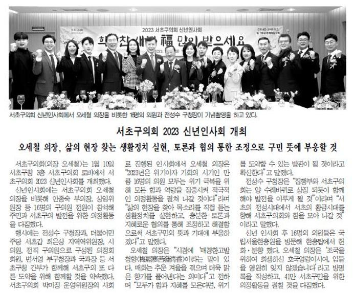 | 언론보도(서초구의회 2023 신년인사회 개최) 2023.01.16 서초구민신문 | |||||